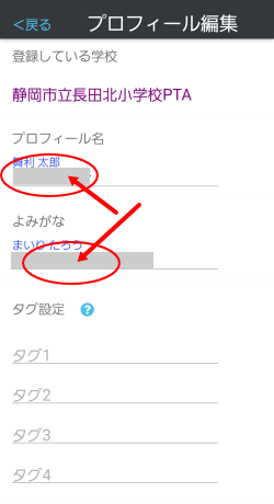 プロフィール編集画面が表示されたら、「プロフィール名」「よみがな」を変更できます。