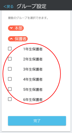 お子さまの学年に「チェック」を入れて「完了」をクリックし終了です。
